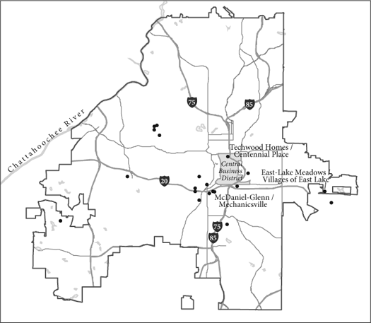 In fact, the AHA saw the Olympic Games as an opportunity for widespread transformation of older public housing projects. The agency announced an “Olympic Legacy Program” that expanded the demolition agenda far beyond Techwood and Clark-Howell. The Olympics and the change in political leadership within the city had brought forth an ambitious plan to demolish over a dozen public housing communities and transform them into mixed-income residential developments. The city secured seven HOPE VI grants from the federal government between 1993 and 2005, but also pursued other financing sources and redeveloped several other projects without HOPE VI funding.