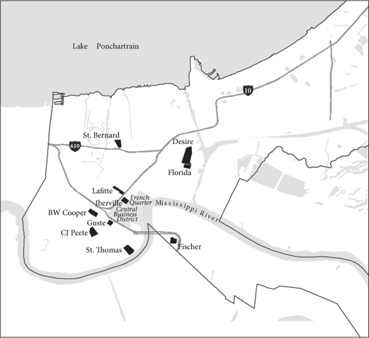 The precipitous decline in the conditions of public housing in the city coincided with increasing pressures for redevelopment and the expansion of upscale residential development in closer proximity to some projects. Political scientist Alexander Reichl maintains that the two trends were not unrelated: “Gross neglect serves the expressed political interest of displacing public housing populations. The battle to dismantle public housing in New Orleans is arguably half over at several housing developments.”52 Reichl wrote those words in 1999, six years before Hurricane Katrina.