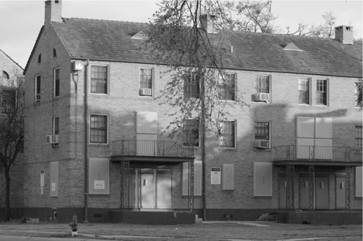 Figure 5. Lafitte public housing development in New Orleans. In the wake of Hurricane Katrina, 896 units were vacated and never reinhabited. It was demolished in 2008 and replaced by Faubourg Lafitte, a mixed-income community. Courtesy Louisiana Landmarks Society.
