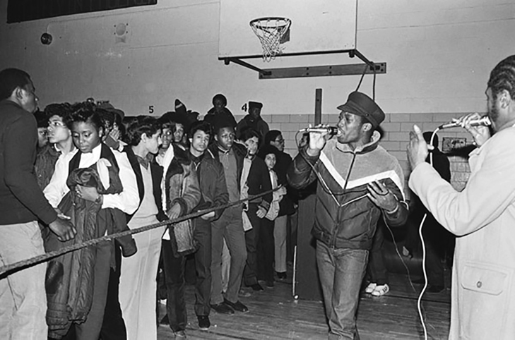 Just like the Knicks, hip-hop was essentially a nonwhite production. Latino and Black young men performed as MCs and deejays, while few white people witnessed live shows. Still, Afrika Bambaataa, one of hip-hop’s earliest pioneers, had a vision. “I’ve got to grab that Black and white audience and bridge the gap,” he said. In 1981, Bambaataa performed in the Mudd Club—his first exposure to a predominantly white crowd. His popularity grew across racial lines, aided by Blondie’s hit song “Rapture” (a pop song with some rap elements … and a shout-out to Fab 5 Freddy), and Bambaataa started playing at the Roxy Club, a popular roller-skating rink and disco located in Manhattan near Tenth Avenue and West Eighteenth. The area around the Roxy was not as gentrified as it would become but even then was known as a progressive art district—not the usual venue for hip-hop artists to perform. Still, Bambaataa and others persisted, and soon, as B-boy Frosty Freeze later recalled, “the downtown scene connected with the uptown scene.”1 Bambaataa also fused musical styles, creating “electro-funk” in the process—his song “Renegades of Funk” (not to be confused with Rage Against the Machine’s version a decade later) is the best example of this genre.