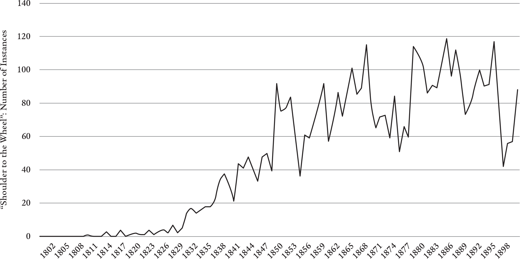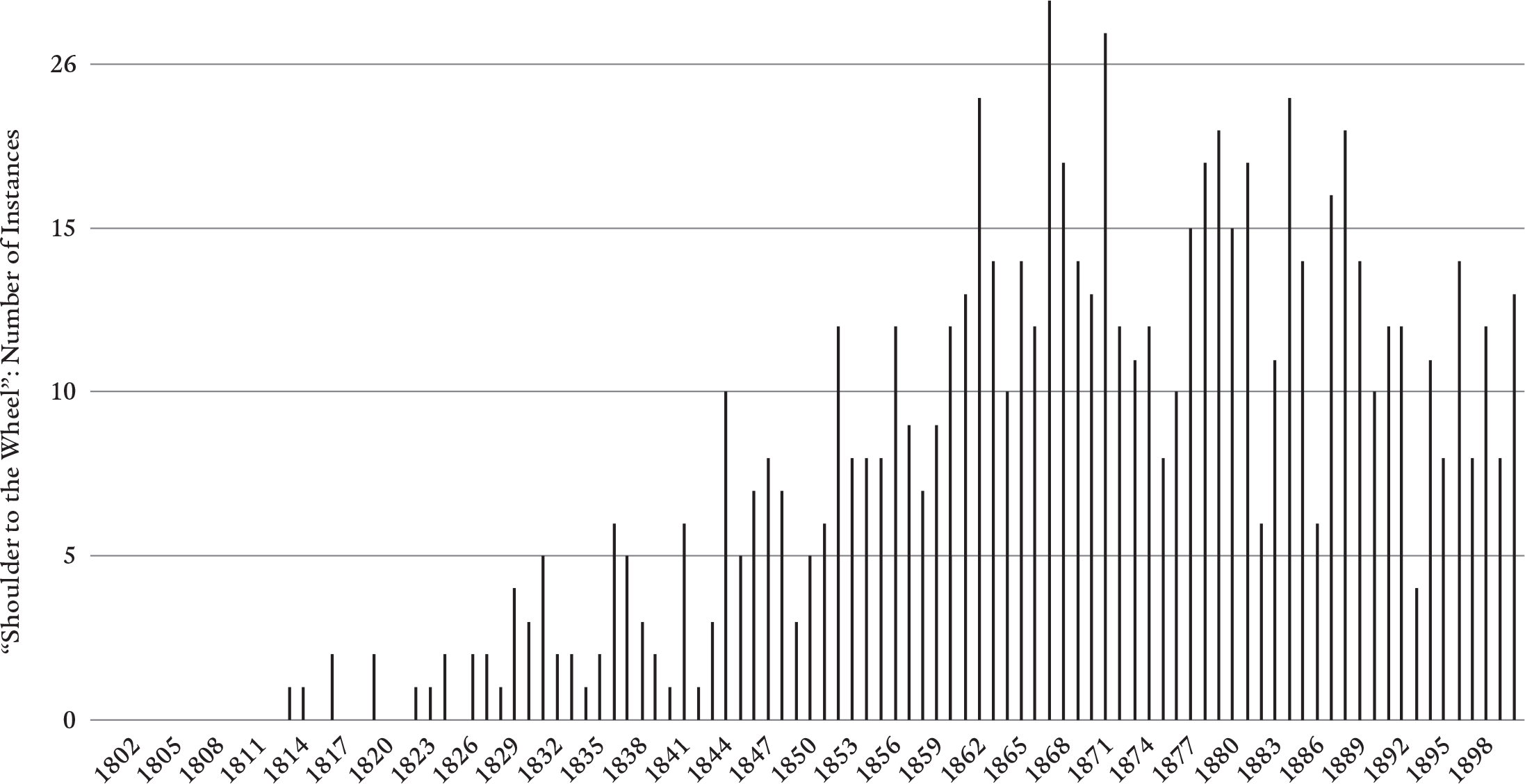 FIGURE 11. “Shoulder to the wheel” appearances in the British Periodicals archive