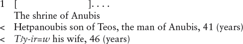 The following short extract is from a bilingual tax register excavated at Ghoran in the South Fayum and now in Paris. This section, written in demotic, records small occupational groups in one particular village:17
