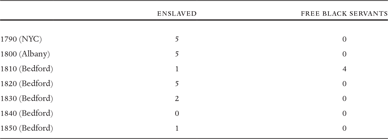 Enslaved and Free Black Servants in the Households of John Jay and William Jay as Recorded in Federal Census (1790–1850)