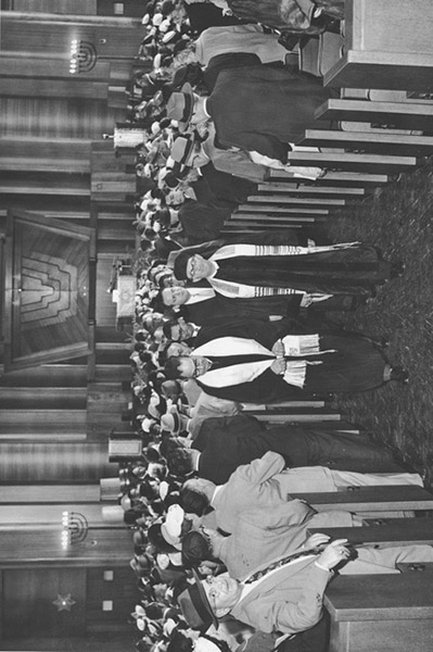 Figure 2. Rabbi Elias Charry and Cantor Soloman Winter lead pro cession at Germantown Jewish Centre dedication, May 1954. Used with permission from Germantown Jewish Centre, Philadelphia.