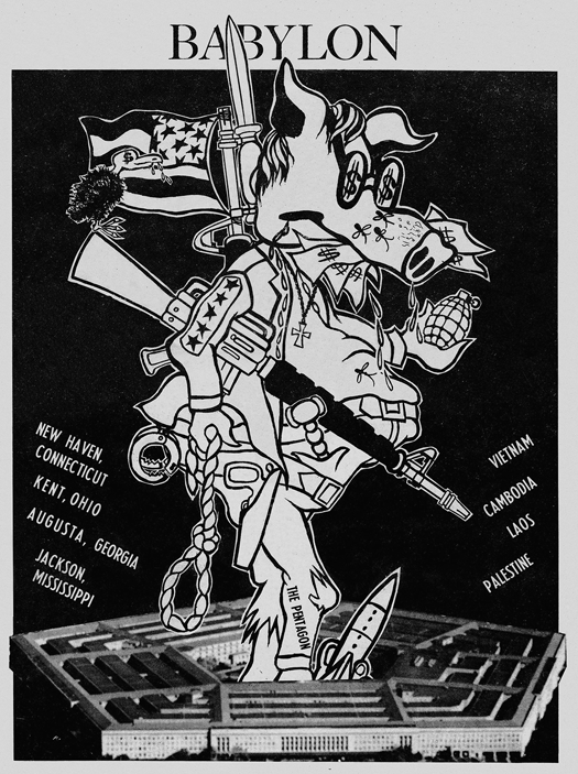 Profanity was not the only distinguishing characteristic of the BPP’s anticolonial vernacular. In speeches and the pages of the Black Panther, party leaders employed a colorful vocabulary that acted as verbal shorthand for their ideological challenge to colonialism, militarism, and white supremacy in their neighborhoods, the United States, and around the world. Cleaver, for example, frequently referred to the United States as “Babylon,” signifying its status as a decadent and declining empire, and he delighted in taunting California governor Ronald Reagan as “a punk, a sissy and a coward.”46 Perhaps the most famous example, however, was party’s use of the epithet “pig.” The BPP’s popularization of the term dated to May 1967, as its leaders were seeking alternate ways to confront the police at a time when armed patrols were no longer a viable option. As Seale described it: