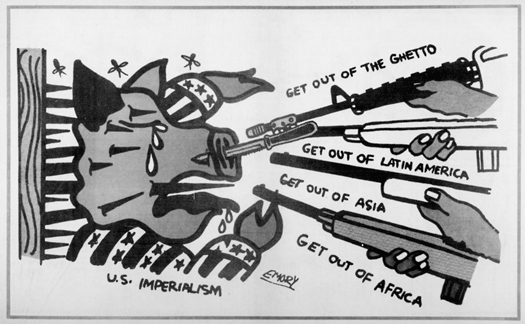 One solution to the power imbalance facing black Americans in the United States was to seek external allies. Building on the pioneering work of Malcolm X and Robert F. Williams, Cleaver stressed the importance of allying with the emerging states of the Third World. This emphasis on international solidarity was the logical conclusion of using the model of internal colonialism to understand the black experience in the United States. While the material circumstances of the “black colony” in the United States might differ from those prevailing among Third World people, all shared an ongoing history as victims of capitalism, imperialism, and white supremacy. From the genocidal conquest of the Americas, African slavery, and formal colonialism to more subtle contemporary practices, including the neo-colonialist economic exploitation of the Third Word and the domestic reliance on people of color as a low-paid, disposable labor force, the prosperity of the West was made possible by “a system of foreign and domestic exploitation, rooted in the myth of white supremacy and the manifest destiny of the white race.”17 Thus rather than marching on Washington or petitioning the federal government, black Americans urgently needed “to gain organizational unity and communication with their brothers and allies around the world, on an international basis.”18