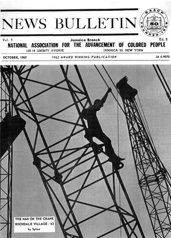 Figure 8. Leonard Sykes, “The Man on the Crane: Rochdale Village ’63.” News Bulletin, Jamaica Branch NAACP, vol. 9, no. 8 (October 1963).