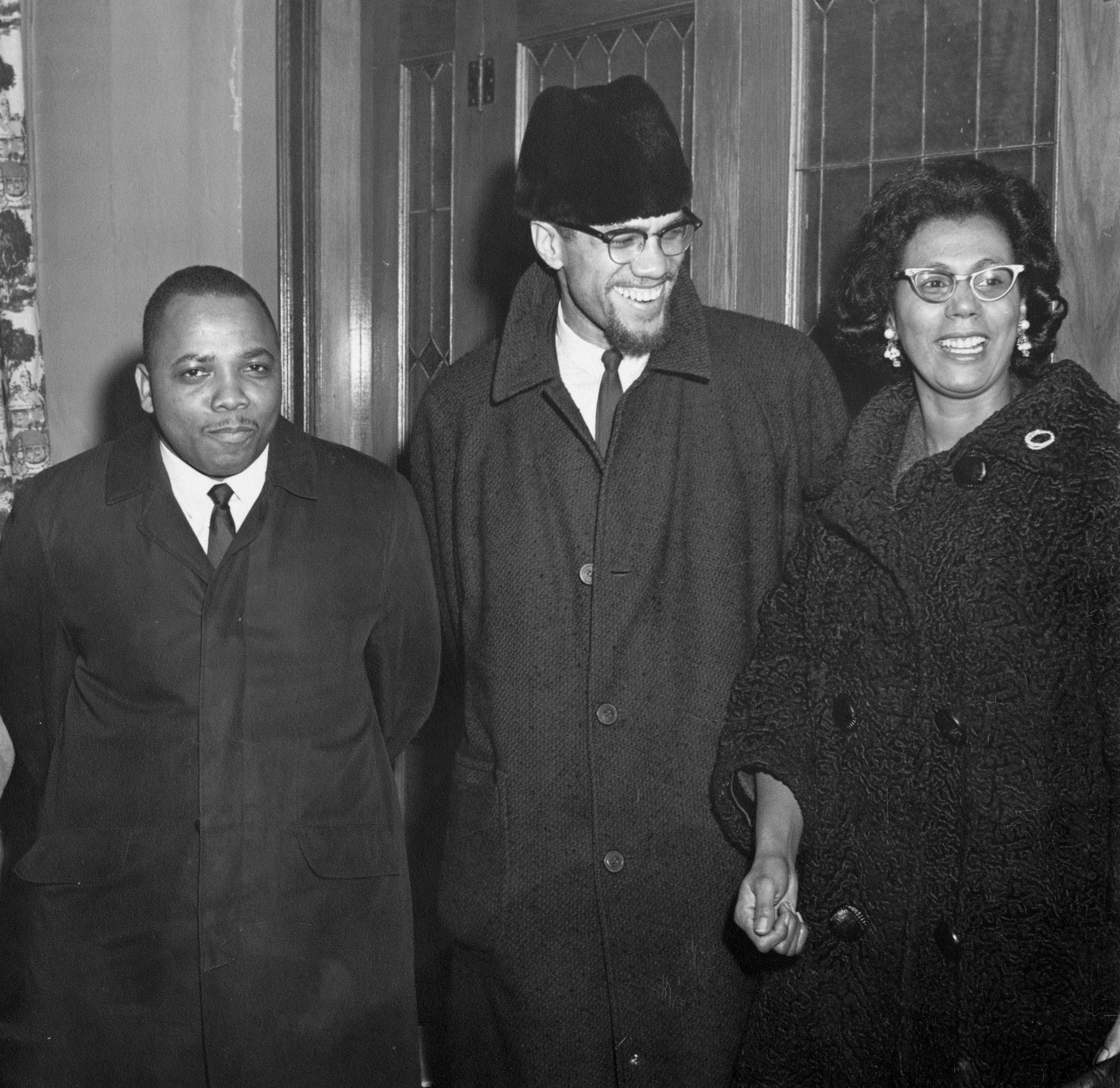 FIGURE 2.2.   Franklin Florence, Malcolm X, and Constance Mitchell pose at the Cornhill Methodist Church. Photograph, Rochester, February 1965. Box 8, folder 6a, Franklin Florence Papers, Rare Books, Special Collections, and Preservation, River Campus Libraries, University of Rochester. Courtesy of Florence Papers, Department of Rare Books and Special Collections, University of Rochester Library.