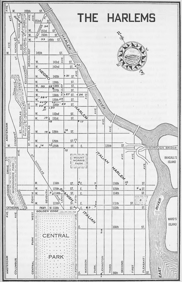 Figures 1 and 2. The Harlems. From New York City Guide, American Guide Series, Works Progress Administration (New York: Random House, 1939). Copyright © 1939 by the Guilds’ Committee of the Federal Writers’ Publications Inc.